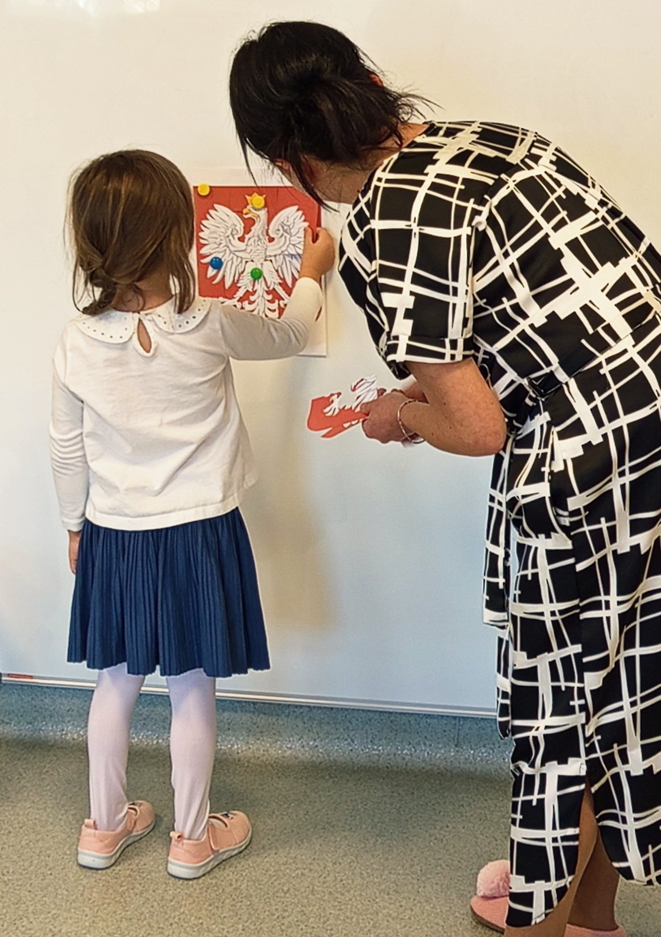 Podczas zajęć dzieci rozmawiały o naszych najważniejszych symbolach narodowych – Fladze, Godle i Hymnie – oraz o roli Marszałka Józefa Piłsudskiego w drodze do niepodległości.