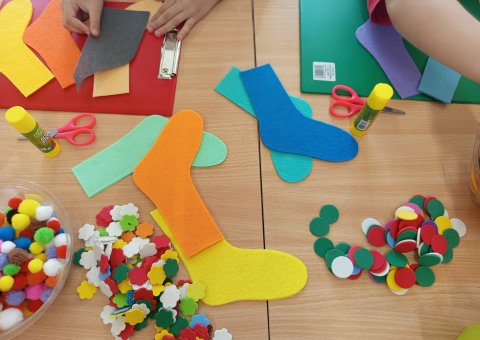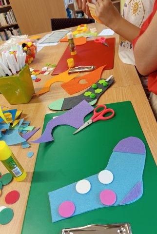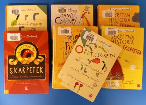 Seria książek Justyny Bednarek pt. "Niesamowite przygody dziesięciu skarpetek" cieszy się wśród dzieci ogromną popularnością. Zabawne przygody tych wyjątkowych bohaterów stały się inspiracją do dzisiejszych wakacyjnych zajęć organizowanych w filii nr 1 Ksawera. Dzieci uczestniczące w spotkaniu miały okazję wziąć udział w zabawie "Superagent". Rozwiązywały poszczególne zadania, a wśród czekających na nich wyzwań było poszukiwanie zagubionych par kolorowych skarpet, układanie puzzli przygotowanych na podstawie książkowych ilustracji oraz odnalezienie różnic w obrazkach skarpetek. Trzeba było także odszukać ukryte litery, aby dowiedzieć się, kim została skarpetka z 4 rozdziału tomu 2 pt. "Nowe przygody skarpetek (jeszcze bardziej niesamowite)".