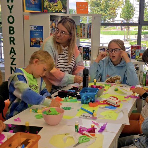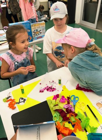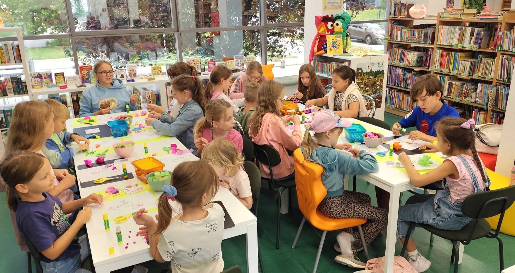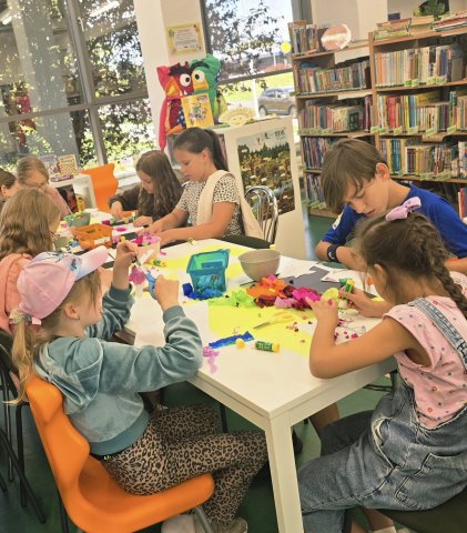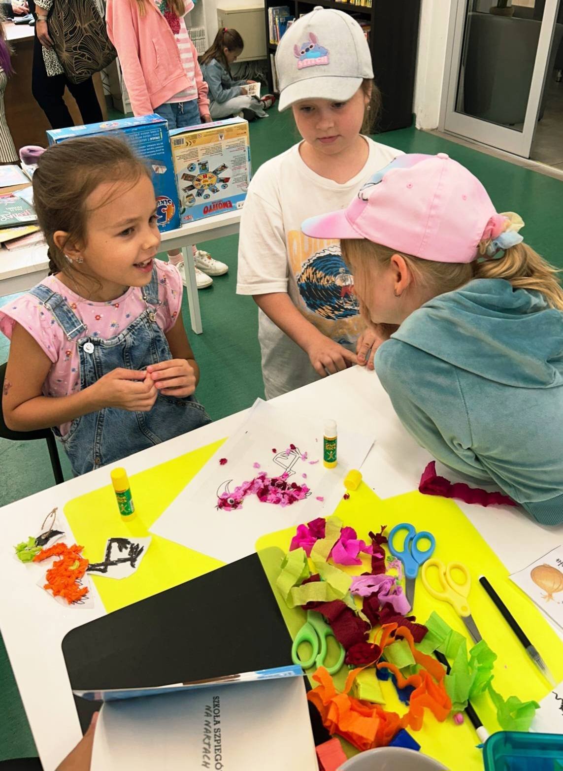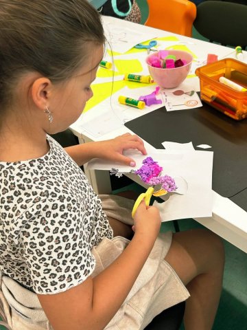 To były nie tylko zajęcia plastyczne, ale prawdziwa przygoda z kolorami, kształtami i… własnymi rączkami. I świetna zabawa! Bo wakacje są wszak od tego, żeby tworzyć, odkrywać i dobrze się bawicć.