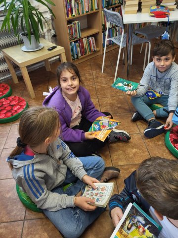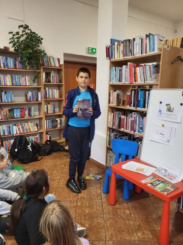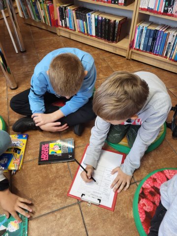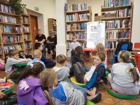 Dzieci miały również okazję zapoznać się z lekturami przeznaczonymi dla klasy III, zgodnie z podstawą programową MEiN. W ramach zajęć uczniowie sami przeczytali wiersz Elżbiety Safarzyńskiej pt. „Książki”, który stał się jednym z elementów spotkania i pozwolił połączyć teorię z praktyką czytelniczą.