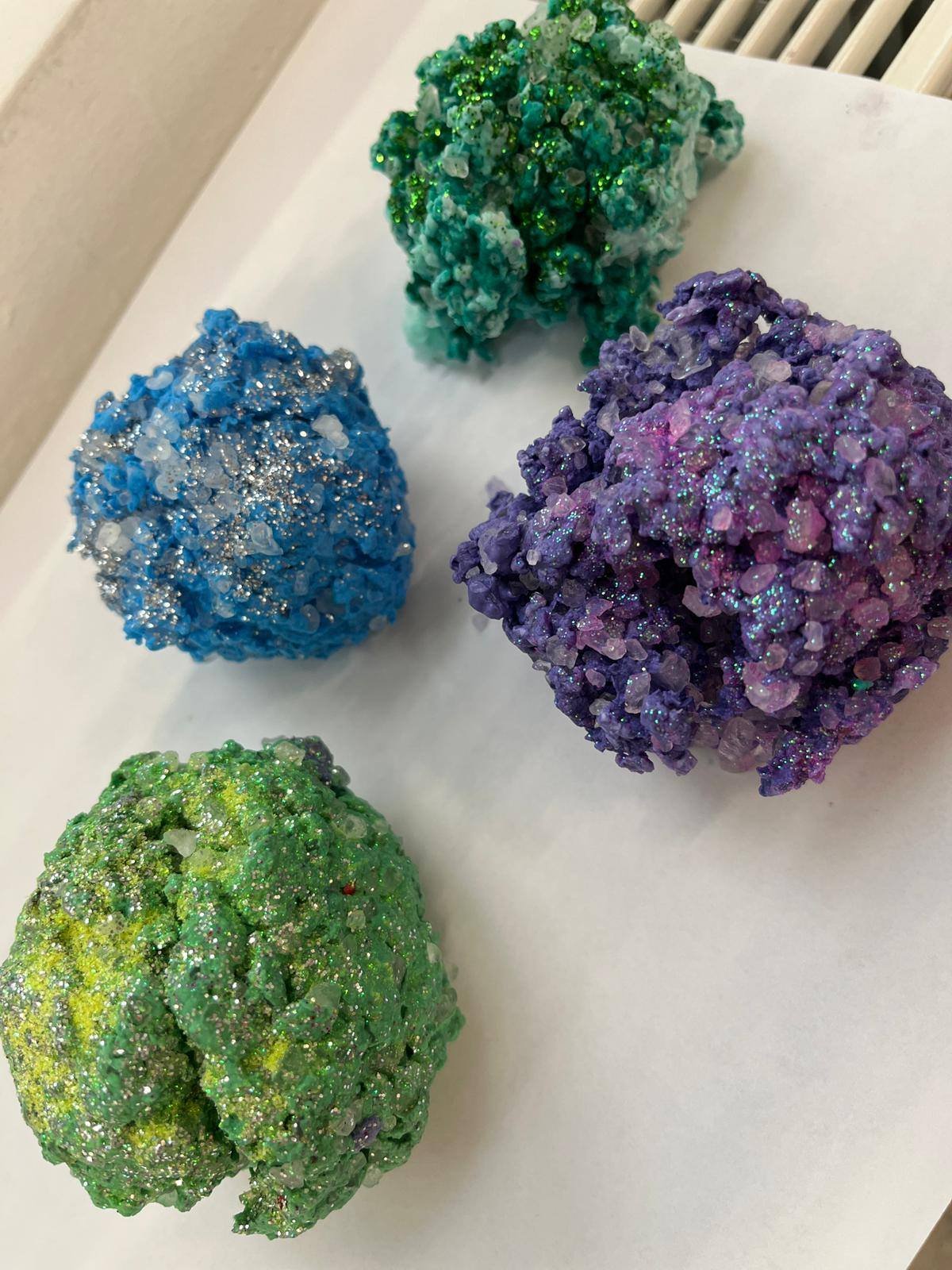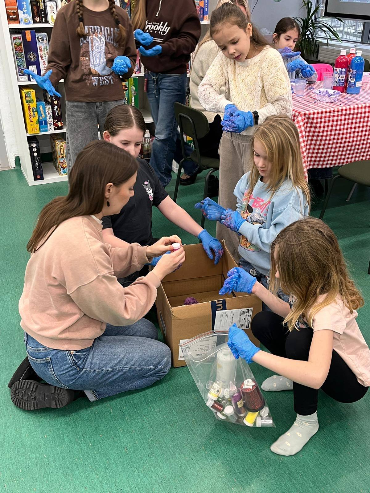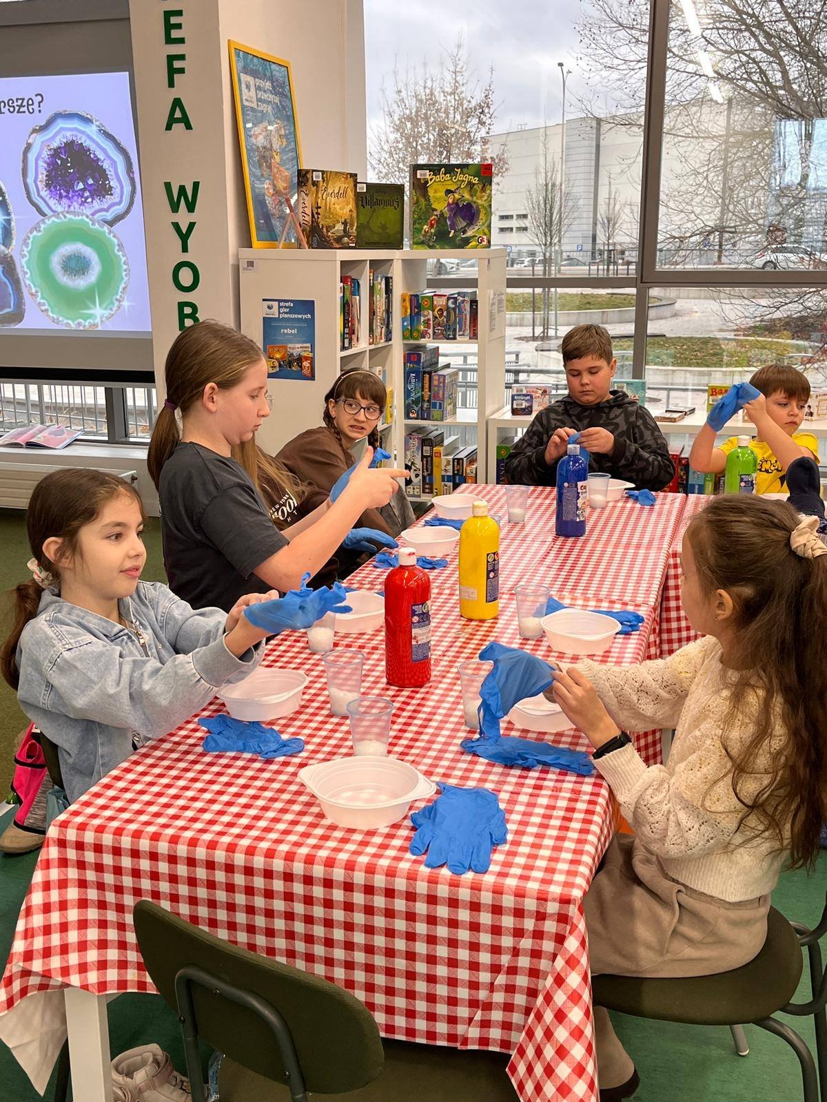 Proces ten trwa tysiące lat, a za bajeczne kolory minerałów odpowiadają odpowiednie proporcje pierwiastków. Choć w bibliotece trudno o prawdziwy wulkan, uczestnicy Biblioferii udowodnili, że wyobraźnia nie zna granic. Używając soli gruboziarnistej, kleju, farb i brokatu, własnoręcznie stworzyli zachwycające, pełne blasku kryształy.