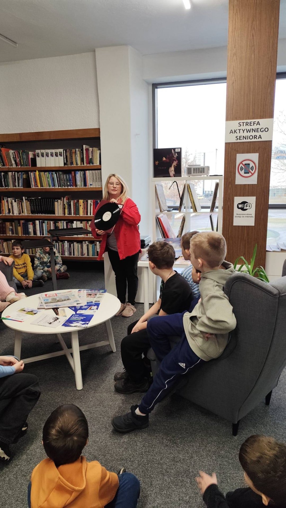Dzieci zwiedzały biblioteczne zakamarki, poznając papierowe skarby biblioteki Największe zdziwienie wywołał... gramofon. Okazuje się, że czarne płyty wciąż mają swoją magię.