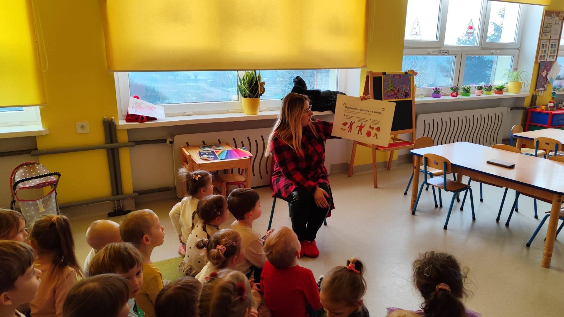 → bezpieczne harce: na specjalnej planszy omówiliśmy zasady bezpiecznej zabawy na śniegu oraz sposoby opieki nad zwierzętami w czasie mrozów