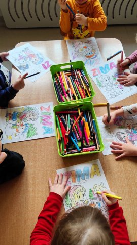→ warsztaty plastyczne: mali artyści stworzyli piękne prace, udowadniając, że zima ma mnóstwo kolorów