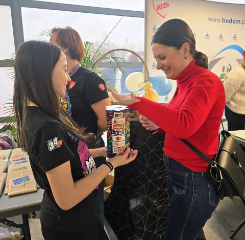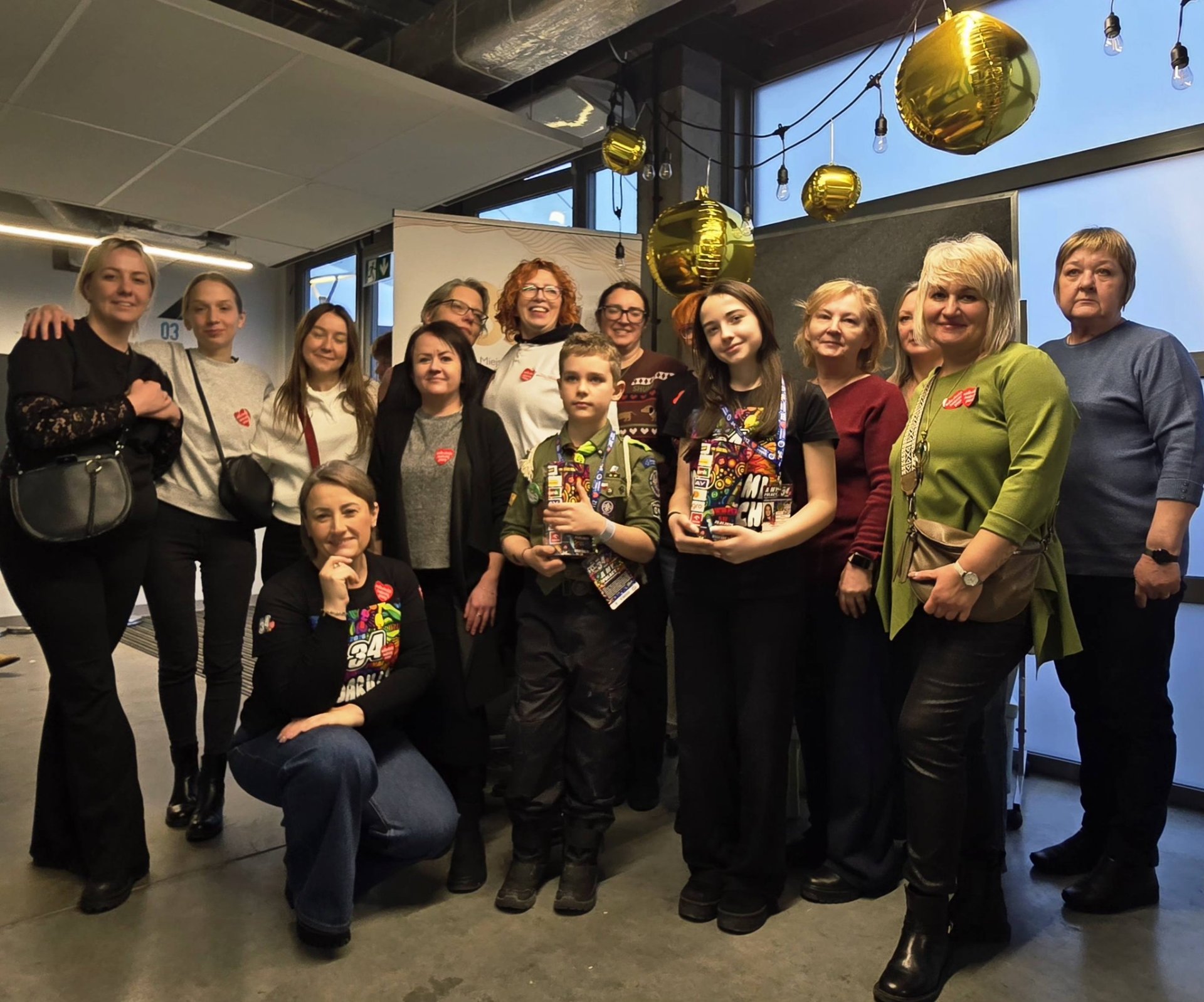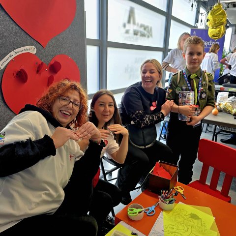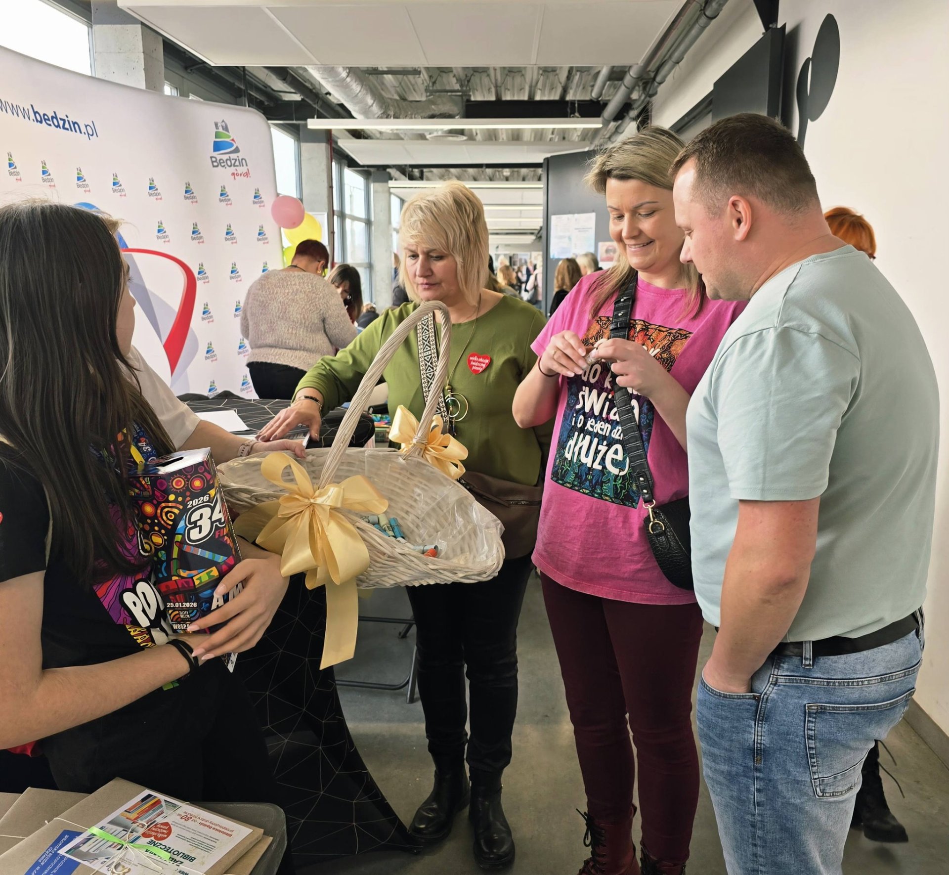 Spójrzcie na te uśmiechy – to niezastąpiona ekipa w samym środku akcji podczas 34. Finał WOŚP w Będzinie. Od lat gramy z Orkiestrą, bo pomaganie mamy po prostu wpisane w „kod kreskowy” naszych serc.