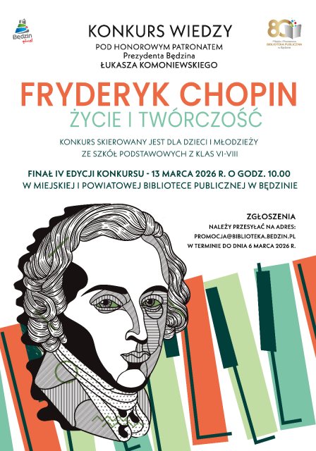 Zgłoszenia do konkursu wiedzy organizowanego pod honorowym patronatem Prezydenta Miasta Będzina Łukasza Komoniewskiego należy przesyłać na adres: promocja@biblioteka.bedzin.pl w terminie do dnia 6 marca 2026 roku.