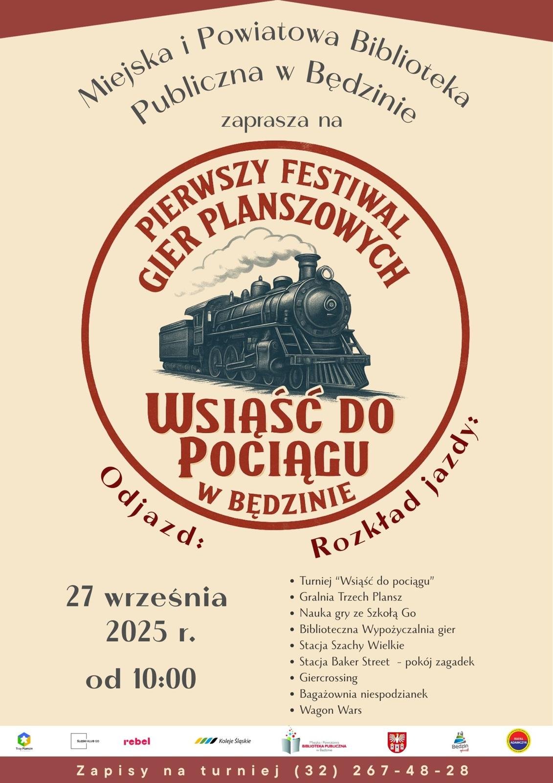 — Turniej „Wsiąść do pociągu” (start o godz. 10:00) – emocjonujące rozgrywki w wersję „Europa” z nagrodami i trofeami dla zwycięzców. Przed rozpoczęciem turnieju przewidziane jest wprowadzenie do zasad gry. Liczba miejsc ograniczona – obowiązują zapisy pod nr tel. (32) 267-48-28.