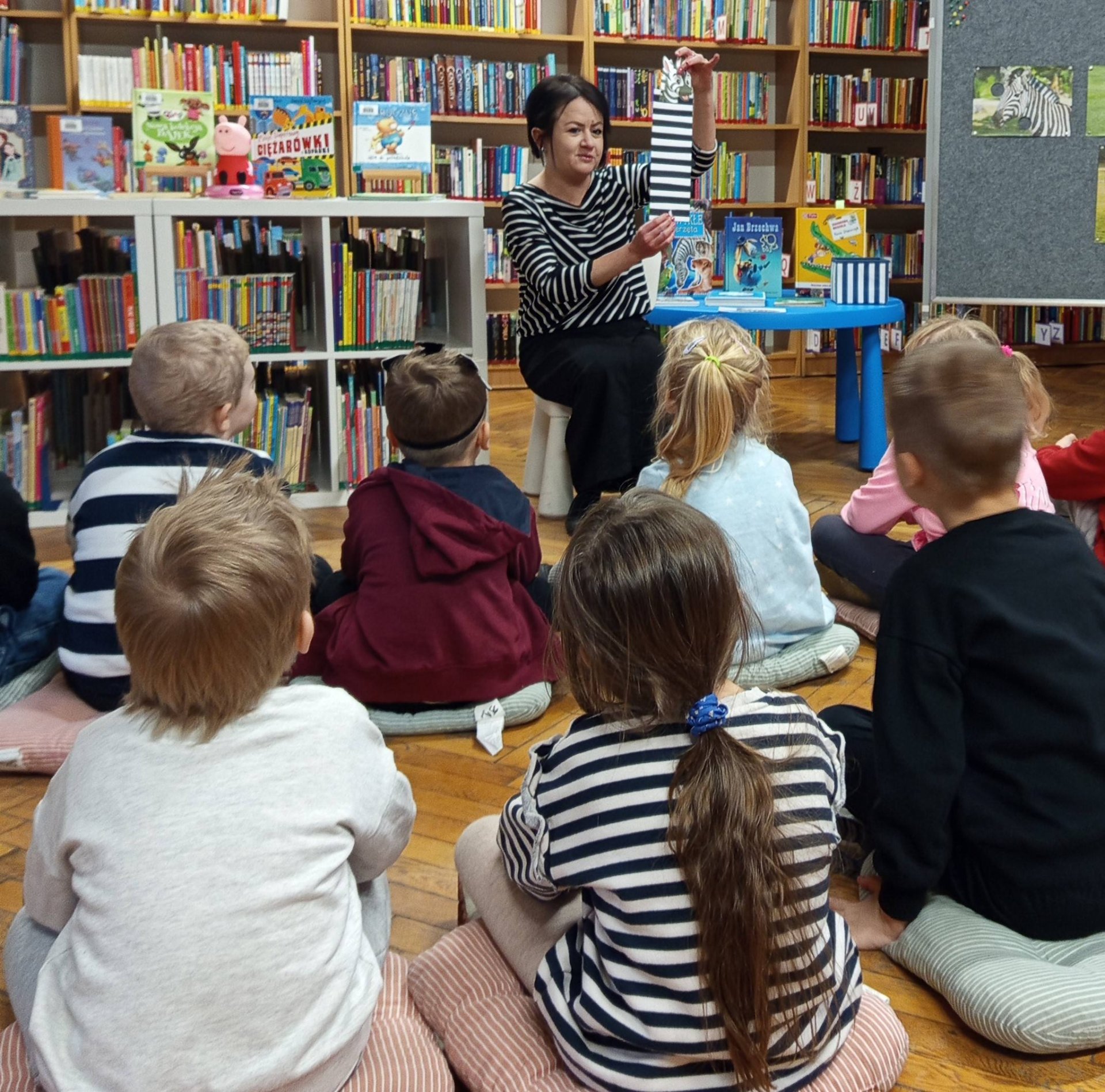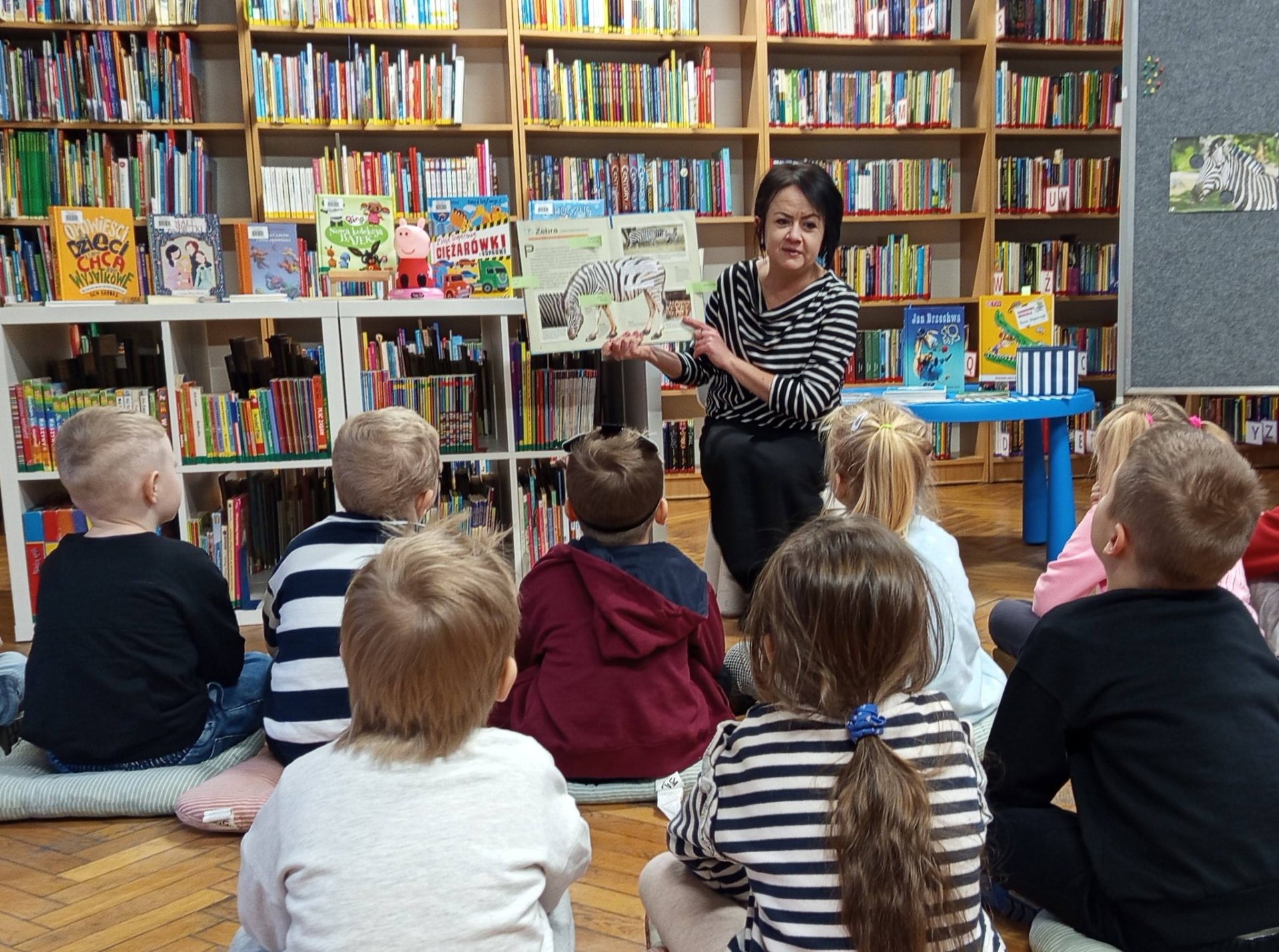 Fakty i ciekawostki: Dzięki książce Danuty Ciszak dowiedzieliśmy się, że zebra to niezła sportsmenka – biega z prędkością 60 km/h! Poznaliśmy też tajemnicę „superzebry”. Odrobina uśmiechu: Rozbawił nas wiersz Ludwika Jerzego Kerna o pasiastej miłości do konia. Nauka przez zabawę: Kasia Stoparczyk wyjaśniła nam, z czego właściwie biorą się czarno-białe paski. Nie zapomnieliśmy o bezpieczeństwie! Nasze przedszkolaki to eksperci od przechodzenia przez „zebrę” na pasach. Na pamiątkę tego spotkania dzieci własnoręcznie przygotowały urocze zakładki do książek.