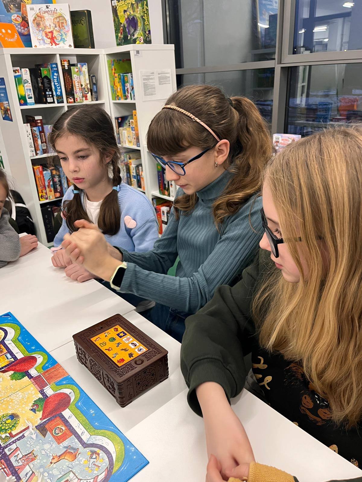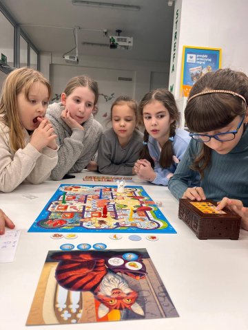 To interaktywna gra, w której nasze uczestniczki wcieliły się w detektywów, by zdjąć zły urok z królestwa i odnaleźć złodzieja królewskiego klejnotu. Zadanie nie było proste. W trakcie kooperacyjnej rozgrywki uczestnicy spotkania przemieszczali się po wybranych komnatach, rozmawiali ze zwierzętami, które chętnie udzielały porad za odpowiednie przysmaki oraz poszukiwali kluczy, dzięki którym mogli otworzyć skrzynie podejrzanych. W tym wszystkim przeszkadzał im zły czarodziej, duch przeganiający ich przez całą posiadłość oraz uciekający czas. Nasze detektywki w wielkich emocjach rozegrały dwie tury, które zakończyły się wielkim sukcesem.