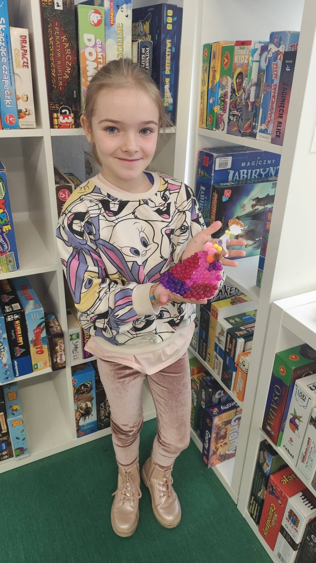 Zanim jednak chwyciliśmy za koraliki, przenieśliśmy się w świat fantazji dzięki książce „Czarownica i zimowe szaleństwa” Mai Strzebońskiej. Poznaliśmy historię nietypowej czarownicy, która zamiast grzać się przy piecu, woli: