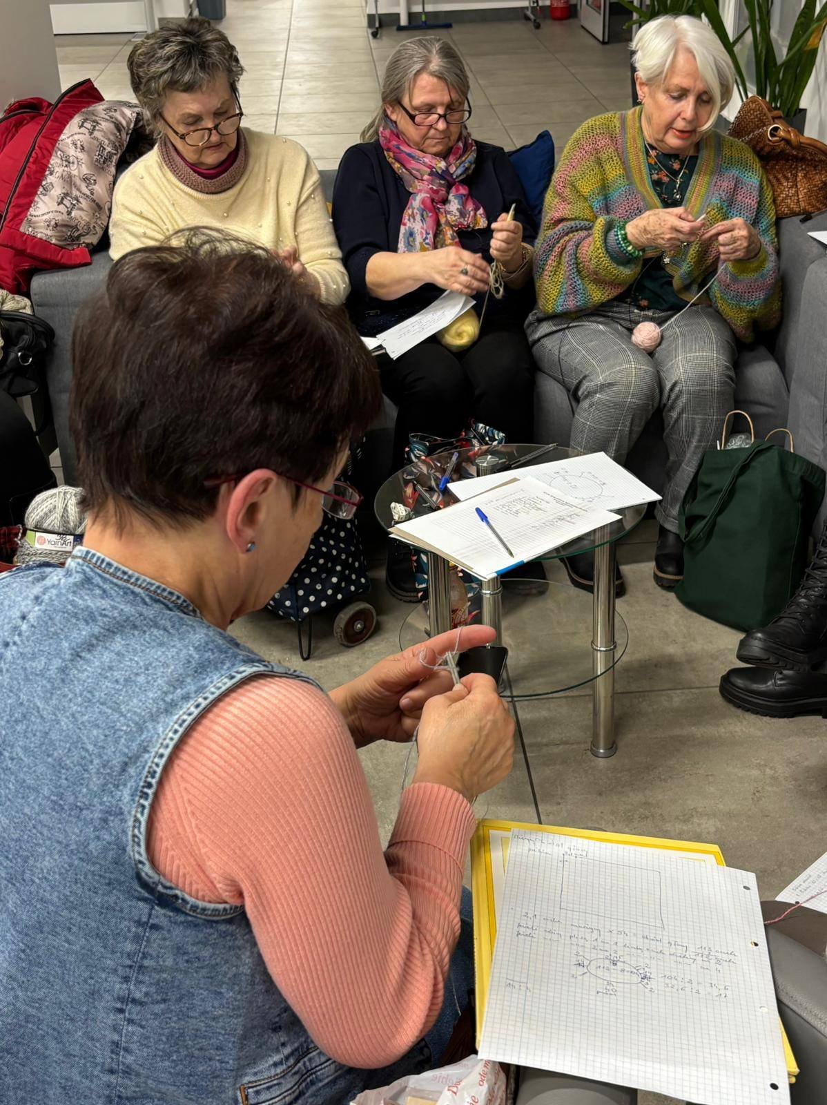 Zaczęłyśmy od „wyższej szkoły jazdy”. Próbki, notatki, wyliczanie obwodu głowy... było sporo nauki, ale i mnóstwo satysfakcji. Mimo parujących głów, każda z nas odniosła sukces – wyszła z warsztatów z „zaczątkiem” własnego swetra. Już nie możemy się doczekać, aż zobaczycie efekty
