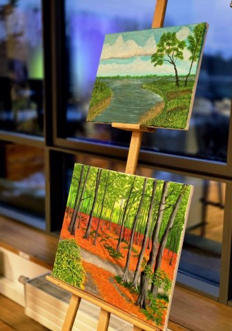 → malarski: autor, jako samouk, w swoich obrazach odnalazł ciszę; jego prace to hołd dla polskiej przyrody – lasów i parków, które dają wytchnienie i spokój.