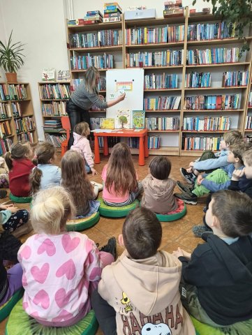 Z tej okazji w Filii Bibliotecznej nr 5 w Grodźcu odbyły się zajęcia dla przedszkolaków z grupy „Tygryski” z Przedszkola Miejskiego nr 14. Ich celem było wprowadzenie dzieci w tematykę nowej pory roku i poznanie jej najważniejszych oznak.