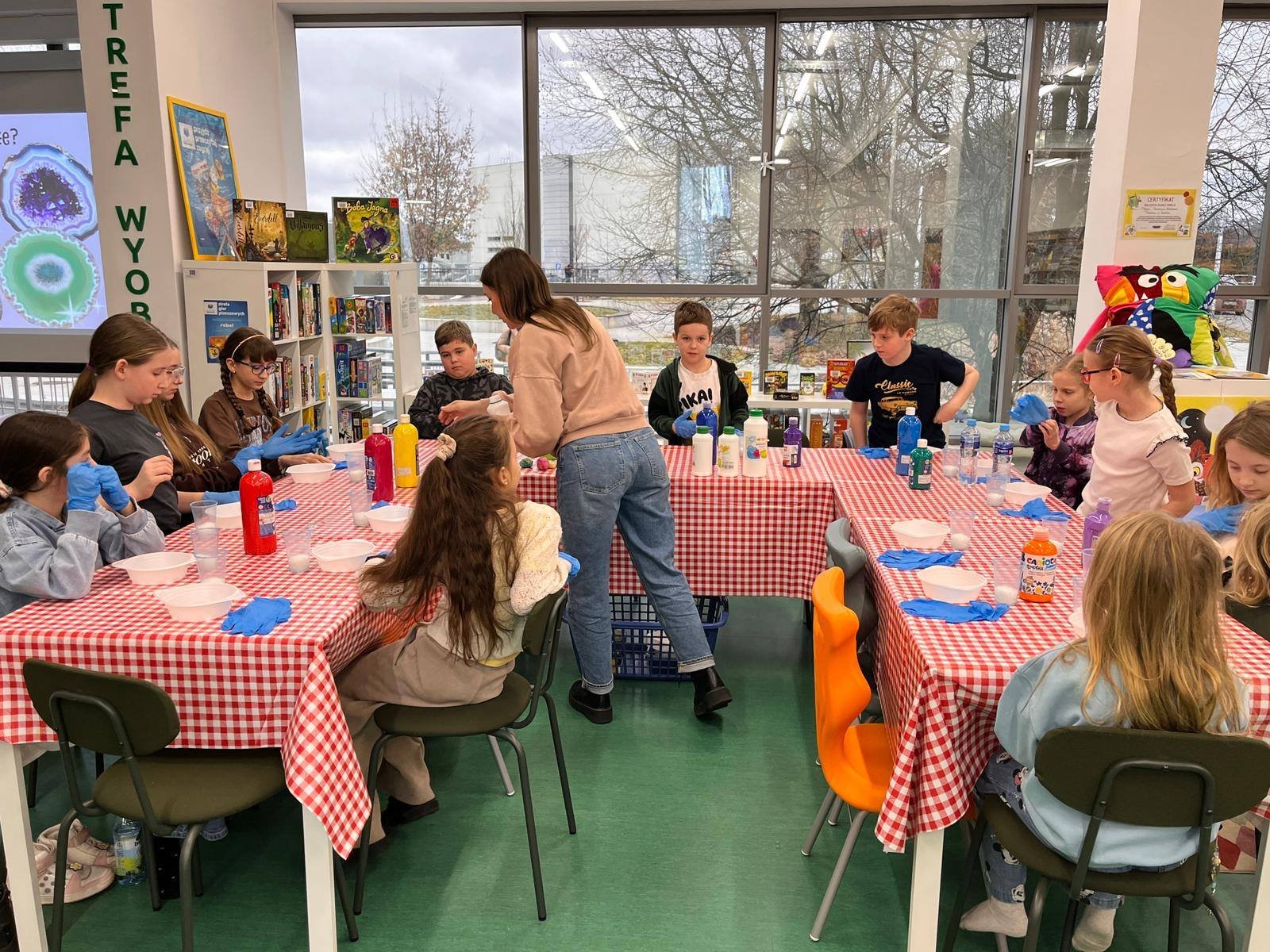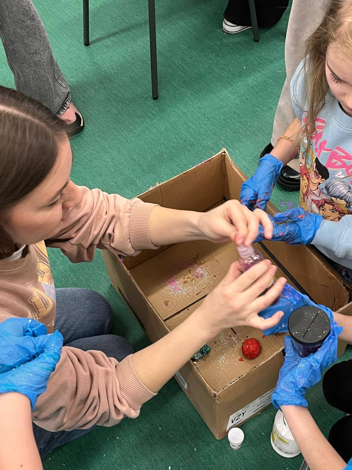 Proces ten trwa tysiące lat, a za bajeczne kolory minerałów odpowiadają odpowiednie proporcje pierwiastków. Choć w bibliotece trudno o prawdziwy wulkan, uczestnicy Biblioferii udowodnili, że wyobraźnia nie zna granic. Używając soli gruboziarnistej, kleju, farb i brokatu, własnoręcznie stworzyli zachwycające, pełne blasku kryształy.