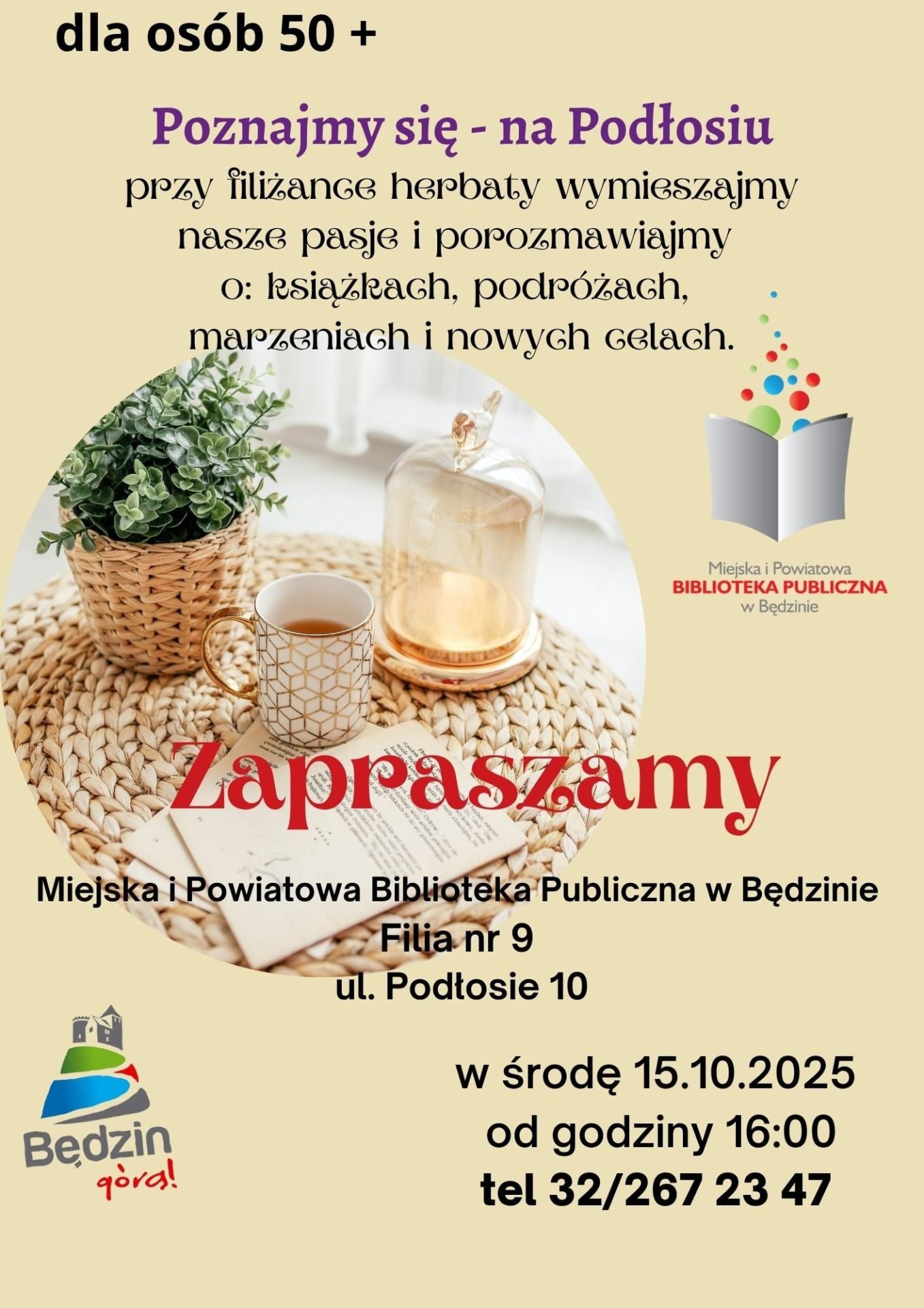 Jeśli macie potrzebę porozmawiania, podzielenia się swoimi sukcesami, uśmiechem czy też opinią na temat ostatnio przeczytanej książki zapraszamy w środę - 15 października od godz.: 16.00 do Filii nr 9 Podłosie.